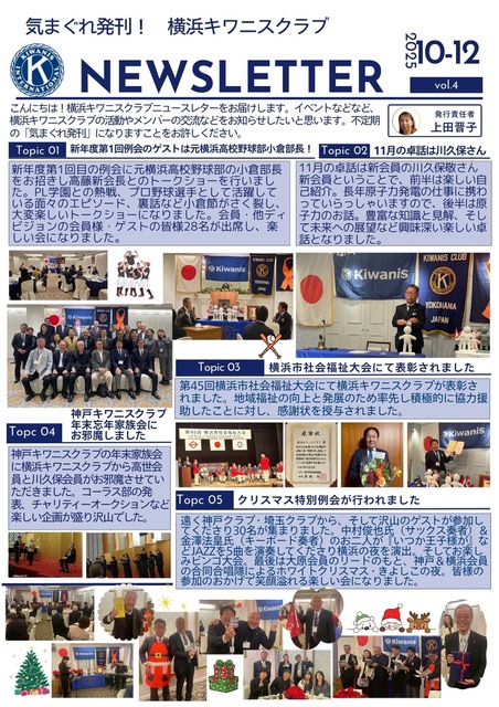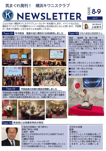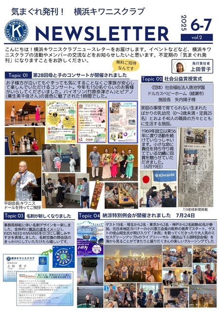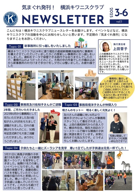 こんにちは!横浜キワニスクラブニュースレターをお届けします。イベントなどなど、横浜キワニスクラブの活動やメンバーの交流などをお知らせしたいと思います。不定期の「気まぐれ発刊」になりますことをお許しください。